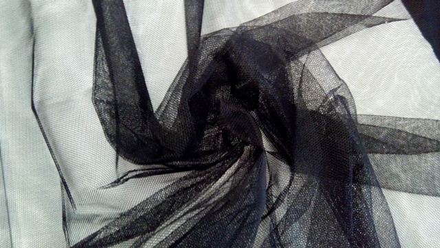 Tyl hrubý, farba: čierna. Materiál: 100 % Nylon. Šírka: 145 centimetrov. Váha: 30 gramov/m². Hrúbka: 1 milimeter. Cena je uvedená za 1 meter.