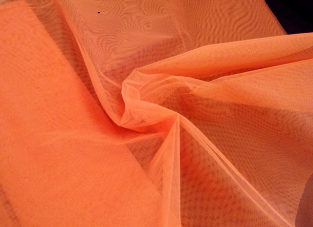 Tyl hrubý, farba: oranžová. Materiál: 100 % Nylon. Šírka: 145 centimetrov. Váha: 30 gramov/m². Hrúbka: 1 milimeter. Cena je uvedená za jeden meter.