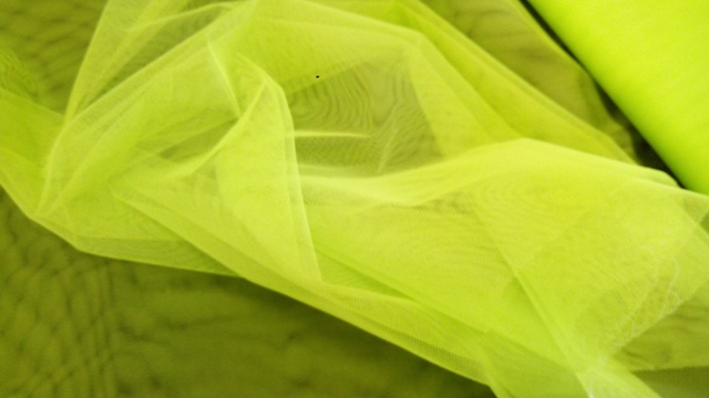 Tyl hrubý, farba: neónová zelená. Materiál: 100 % Nylon. Šírka: 145 centimetrov. Váha: 30 gramov/m². Hrúbka: 1 milimeter. Cena je uvedená za jeden meter.