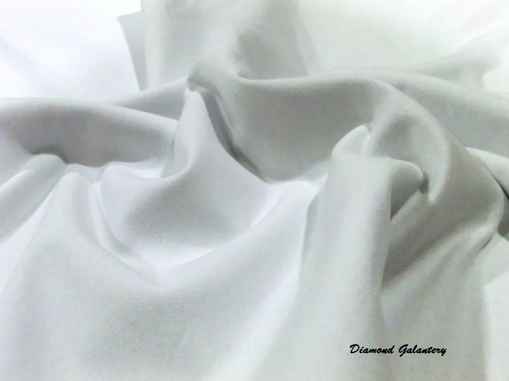 Úplet jednofarebný, farba: biela, šírka: 184 cm. Materiál: 65 % bavlna, 5 % spandex, 35 % polyester. Odporúčané pranie na 30 stupňov. Látka sa posiela v celku. Cena je uvedená za 10 cm látky.