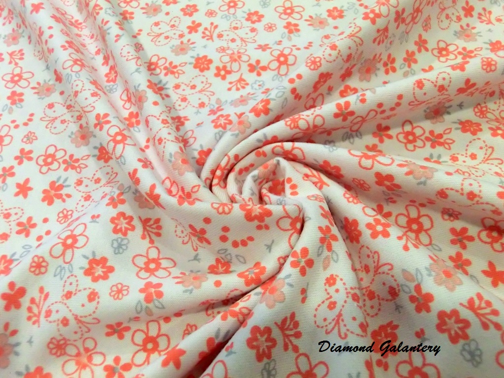 Úplet - Kvetinky. Materiál: 8 % elastan, 92 % bavlna. Šírka 170 cm. Odporúčané pranie na 30 stupňov. Látka sa posiela v celku. Cena je uvedená za 10 centimetrov.