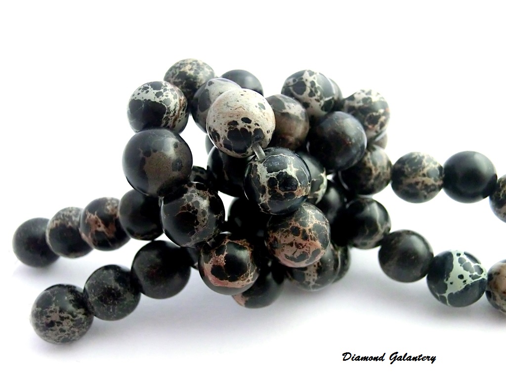Jaspisové korálky, rozmer: 8 mm, priemer dierky cca 1,3 mm, farba: čierne. Materiál: syntetický kameň. Cena je uvedená za jeden kus.