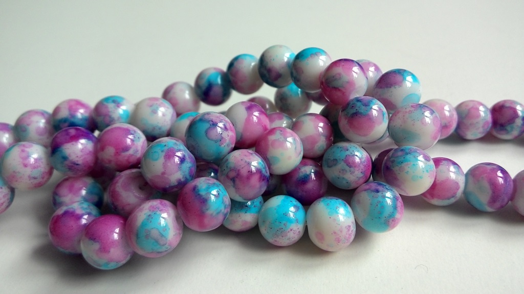 Korálky sklenené 10 mm - bielo-azúrovo-ružovo-modré